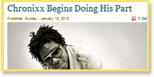 Nineteen-year-old Jamar 'Chronixx' McNaughton is the youngest musical force about to hit Jamaica today. Chronixx, once known as 'Little Chronicle', is the son of local Reggae artiste, Chronicle, and grew up in the studio, learning first-hand from popular artistes like Burro Banton, Norris Man and the legendary Gregory Issacs.